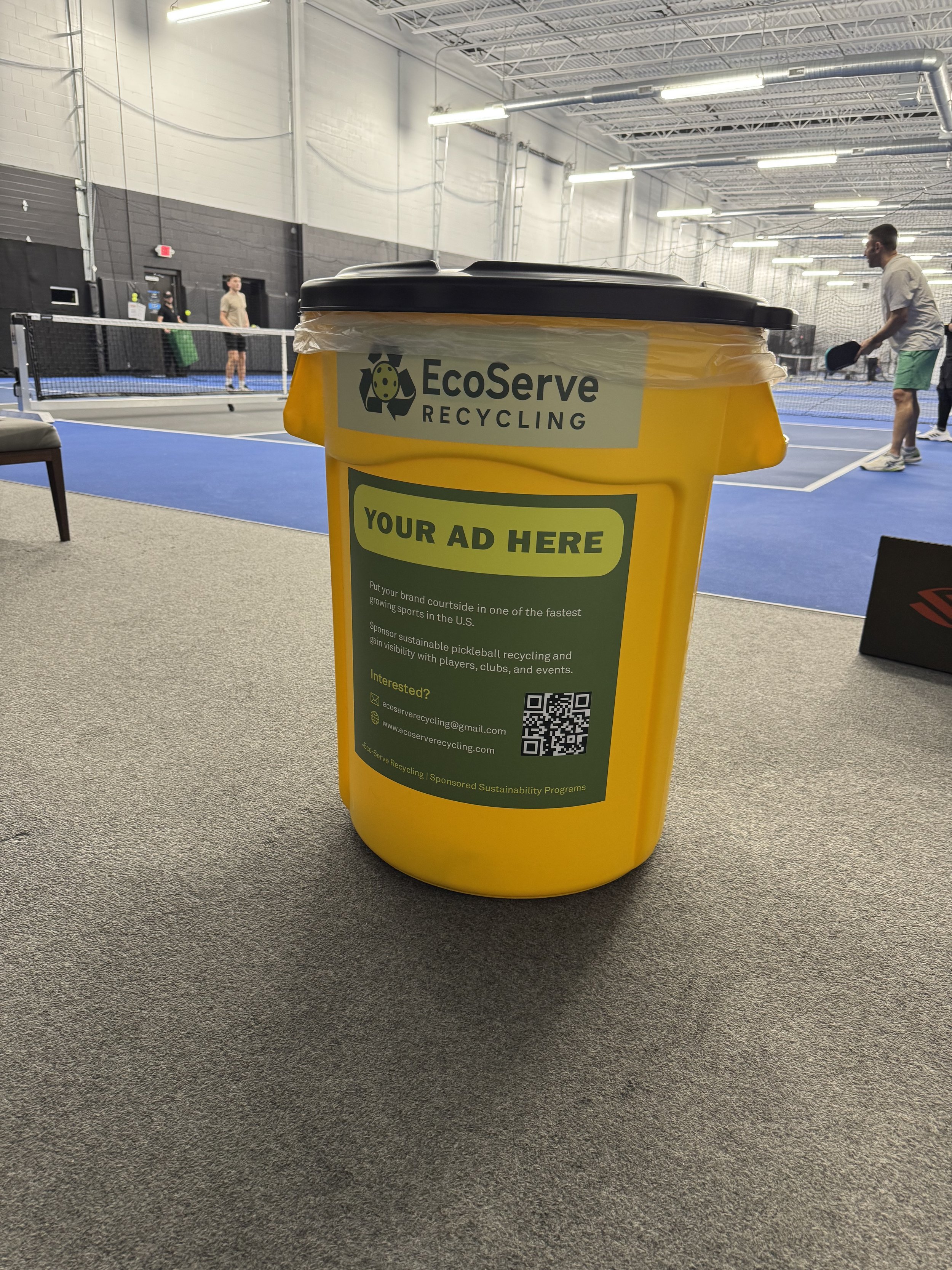 We supply custom-branded collection bins and courtside bins positioned near courts so players can easily dispose of cracked and worn pickleballs.